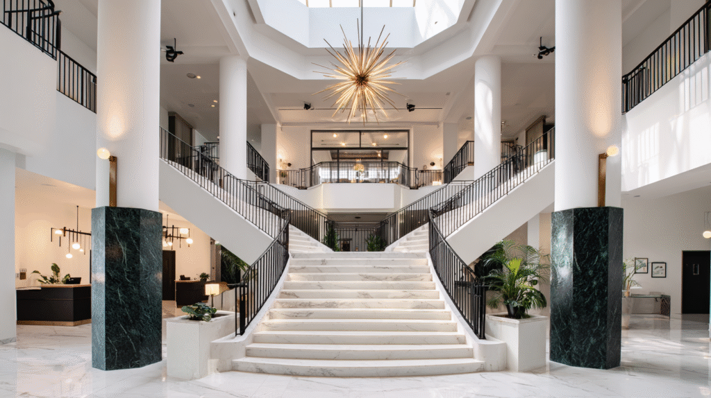 ベルリンの中心地ポツダム広場に位置し、地下鉄駅まで徒歩数分という抜群の交通アクセスを誇ります。ベルリン・ブランデンブルク国際空港や中央駅からの移動もスムーズで、ビジネスにも観光にも利便性が高い場所です。